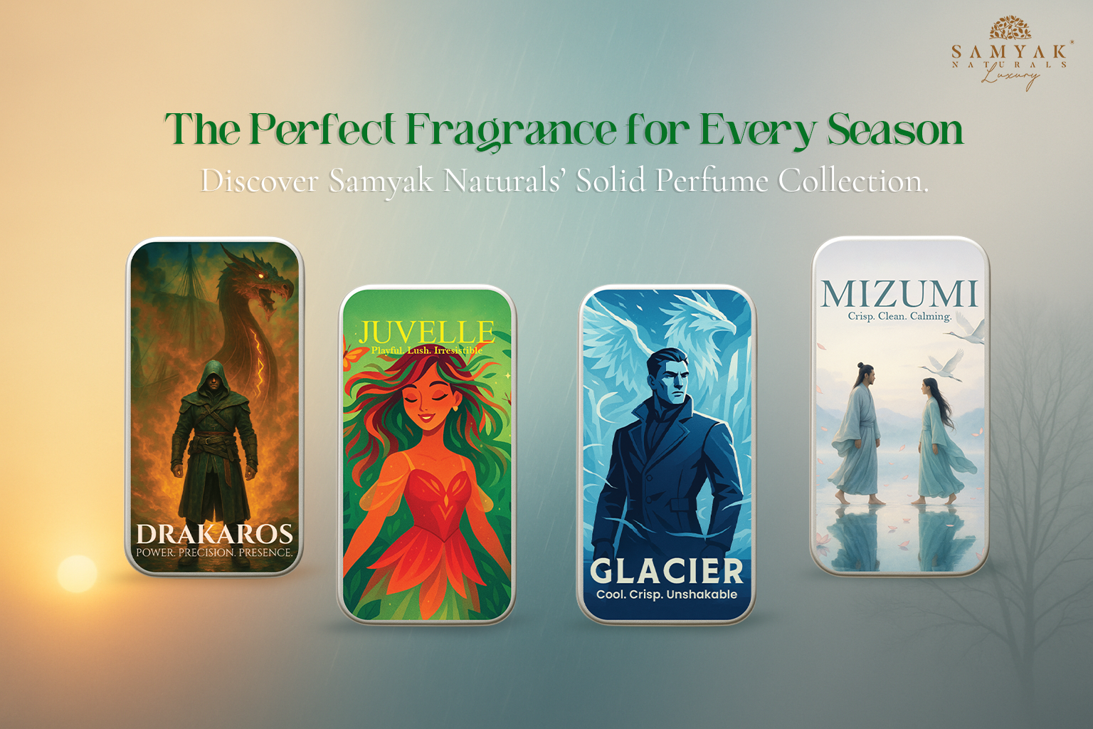Discover the top solid perfumes perfect for Indian summers, monsoons, and winters. Stay fresh all year with vegan, eco-friendly fragrances from Samyak Naturals.