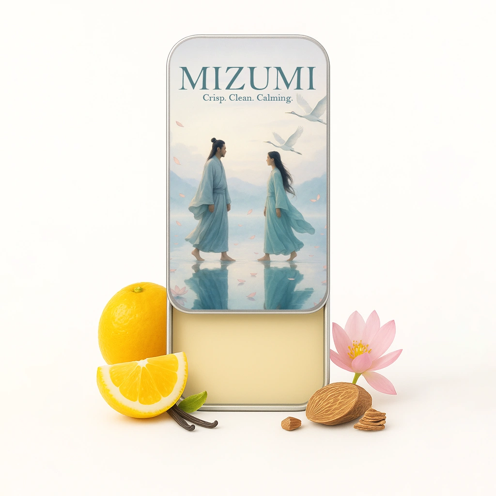 Mizumi opens with a vibrant citrus medley of yuzu, mandarin, and bergamot, refreshed by herbal touches of sage and coriander. The heart blossoms with blue lotus, nutmeg, and saffron, adding depth and intrigue. Finally, the fragrance settles into a sophisticated base of vetiver, cedarwood, and amber — creating a citrus-driven aquatic scent that transitions seamlessly from day to night.